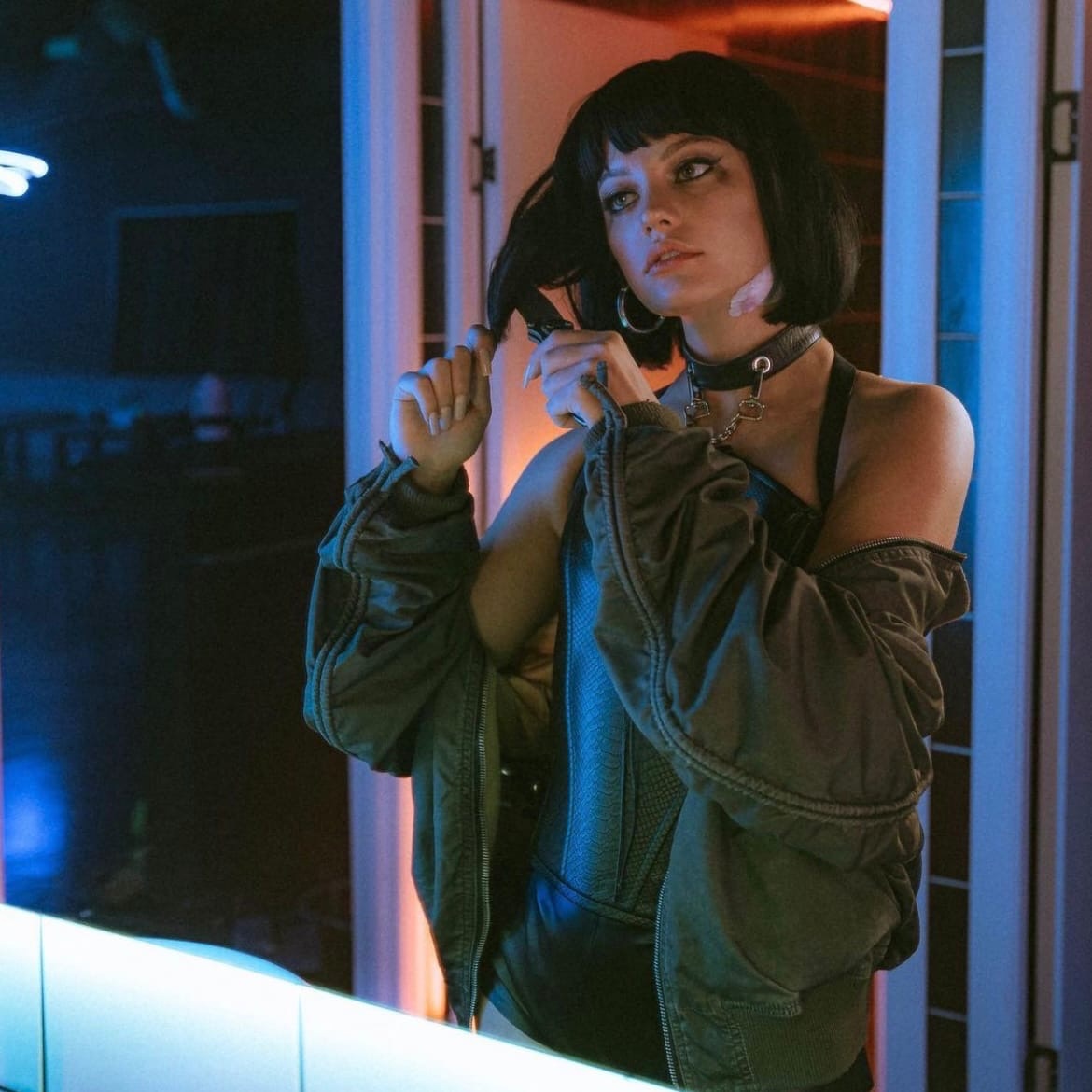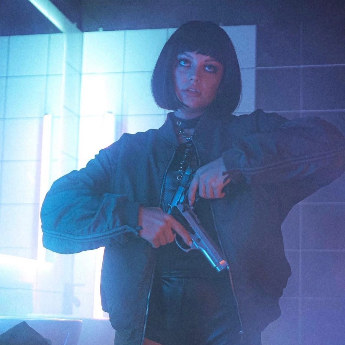 Блогерша воплотила перед камерой образ некой опасной преступницы, которая в общественном туалете решает замаскироваться, чтобы избежать преследования. Но как можно затеряться в толпе с такой шикарной внешностью? Дилара примерила кожаный корсет и очень короткие шорты, а также оверсайз-куртку и массивные ботфорты. Никакая ужасающая себя злодейка не пойдет наказывать неугодных без пистолетов, поэтому он в кадре тоже, естественно, имеются.
