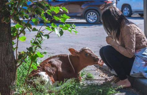 Экоактивисту, выгуливающаю теленка на Красной площади решили задержать