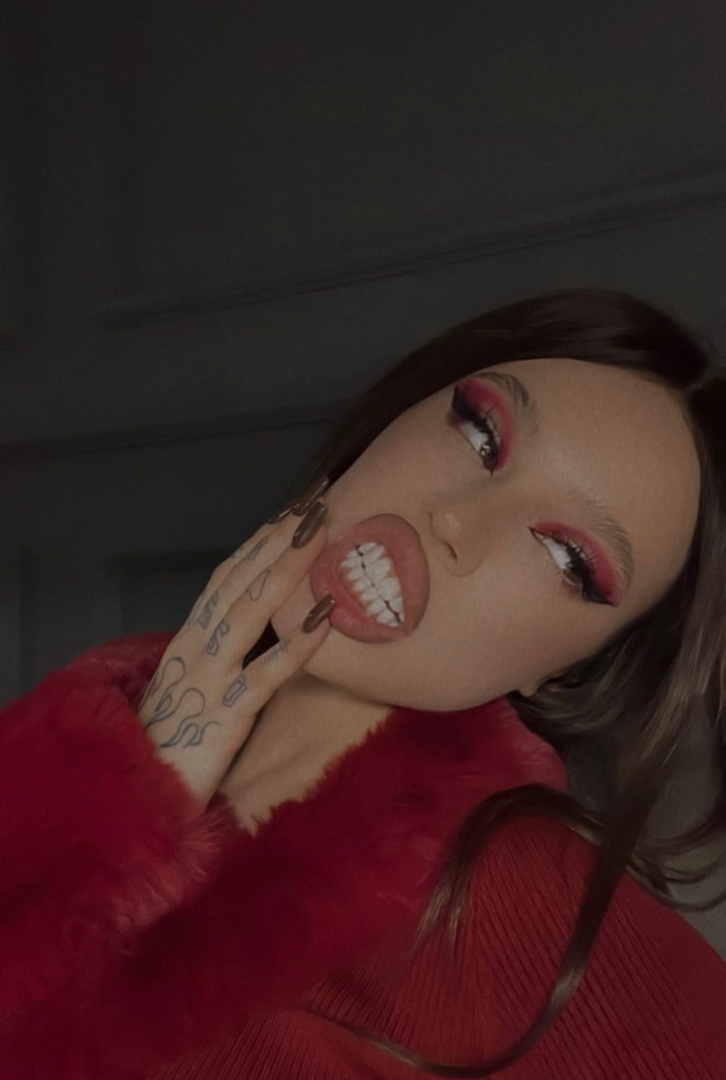 Рэперша в этот раз позирует в парике шоколадного цвета, а из одежды примерила ярко-красную кофту с меховыми манжетами и воротничком. Очень эффектный макияж, а также маникюр, в тон делают образ красочным, но подписчикам не особо понравилось выражение лица Даши на всех снимках. Девушка активно демонстрировала состояние своих зубов, что как-то не расположило к себе аудиторию.