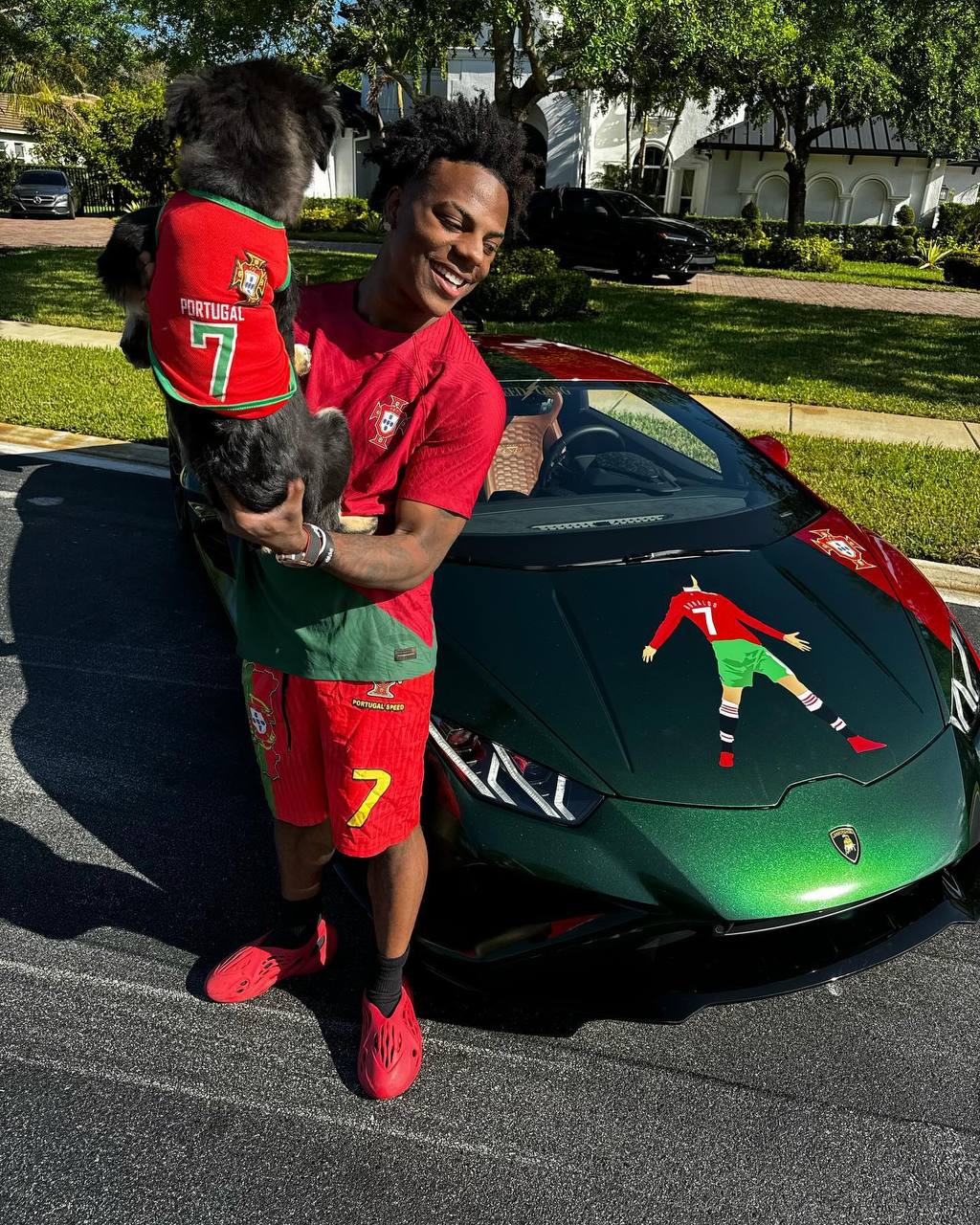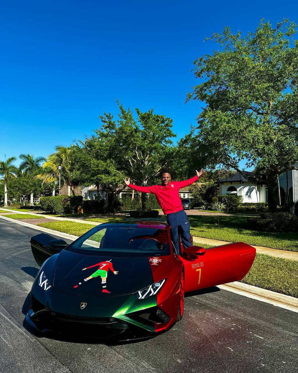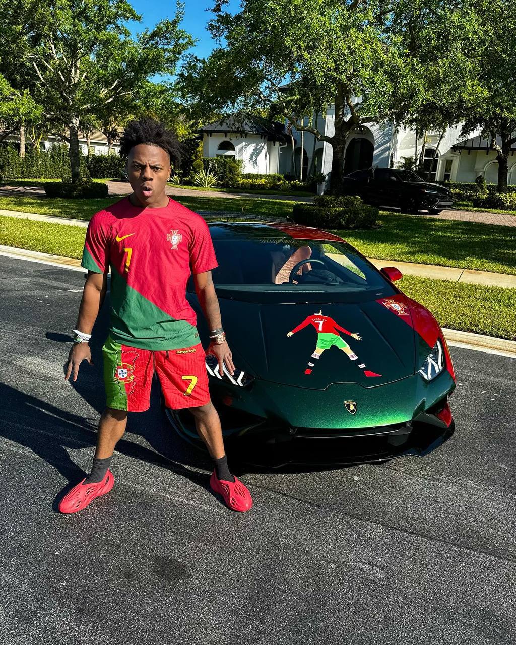 IShowSpeed, один из самых популярных стримеров в мире, наконец приобрел свой первый автомобиль - и это стал спорткар Lamborghini. Что особенно заметно, IShowSpeed сразу придал автомобилю индивидуальность: одна сторона окрашена в красный цвет, а большая часть в зеленый, соответствуя цветам сборной Португалии по футболу.