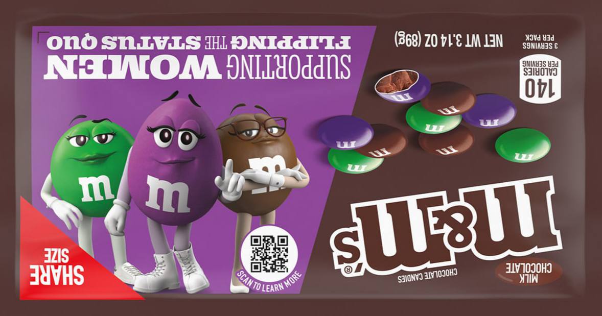 На упаковке свежей пачки будут изображены M&M’s-девочки. Заполнять пачку сладостями трёх цветов, начинка в которых будет из арахиса, арахисового масла и молочного шоколада. Каждый вкус олицетворен персонажем женского пола - они часто появляются в маркетинговых роликах, рекламах и т.д. Но что интересно, в новом пакете два из трех женских конфеты считаются лесбиянками.