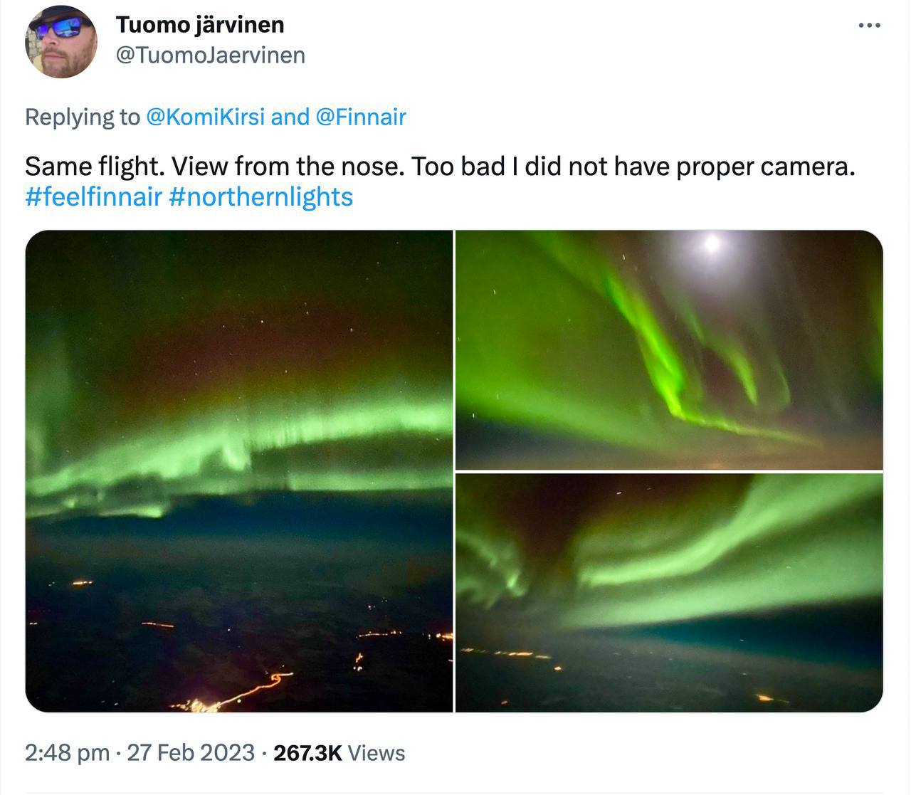 Пилот развернул самолет ради вида на северное сияние