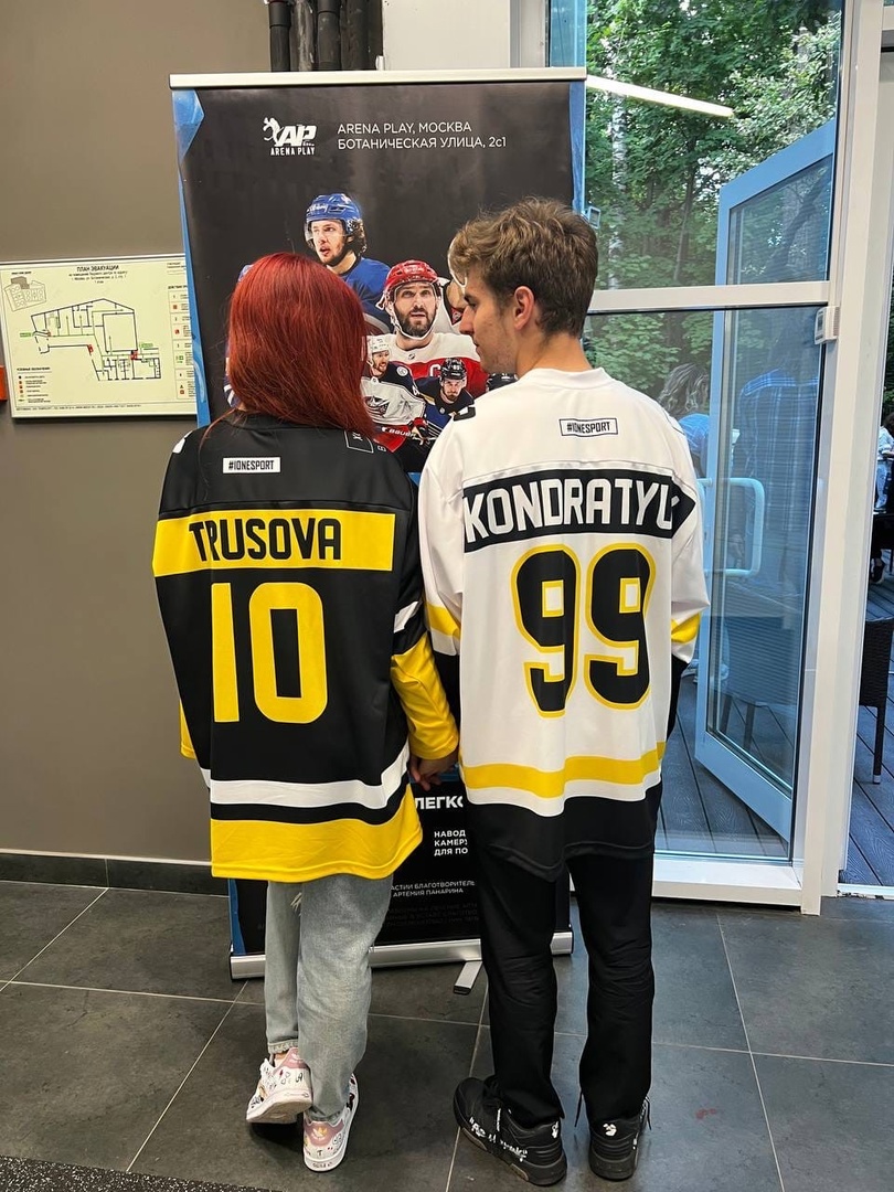 Фигуристка с Марком Кондратюком посетила товарищеский хоккейный матч - ребята показали фото с Александром Овечкиным! Кроме этого, на Саше и Марке были большие хоккейные поло с их фамилиями на спине - это хорошо видно по милому фото пары на фоне постера матча.