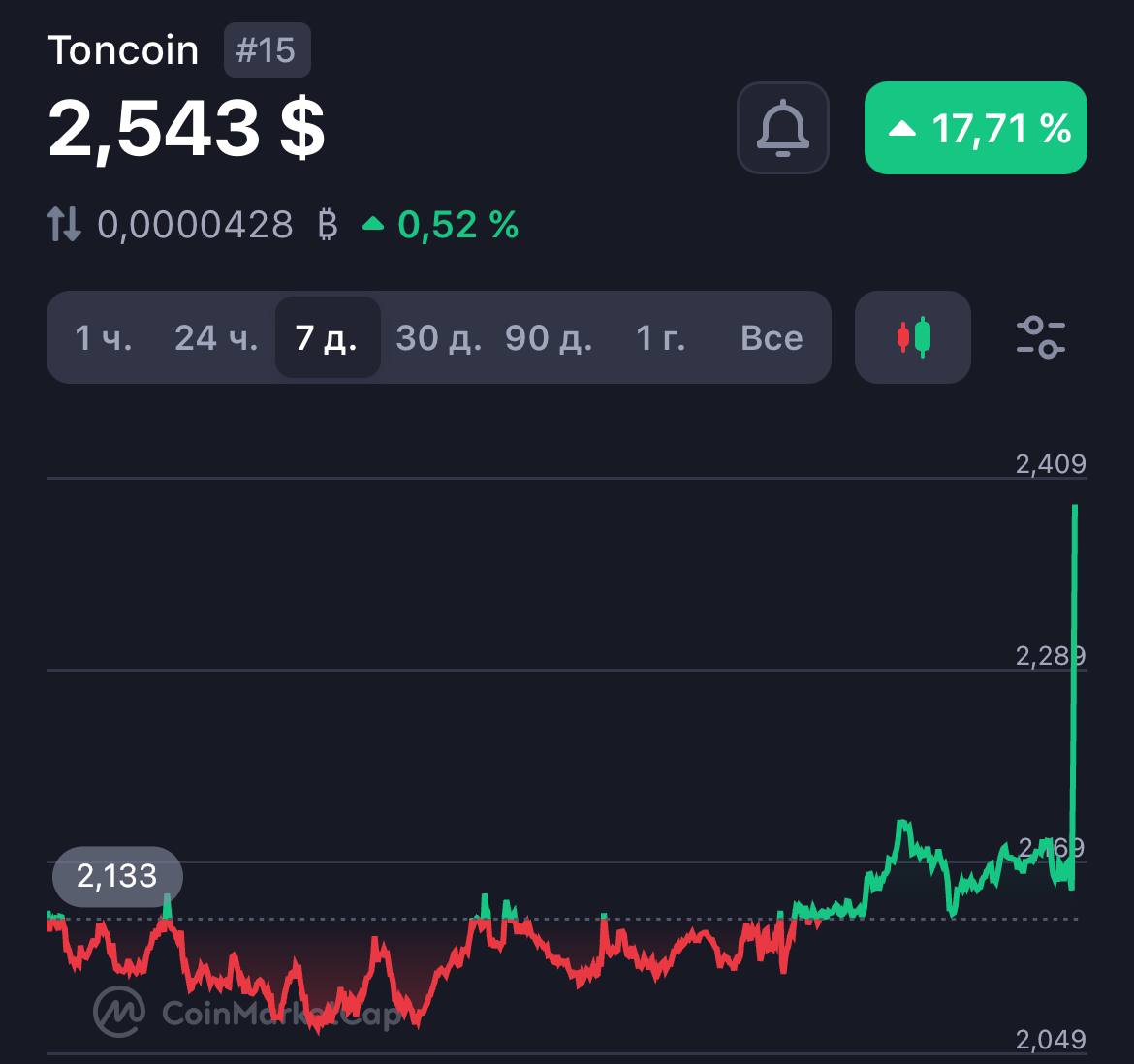 Следом за его заявлением Toncoin (TON) взлетел на 15% до $2,543.
