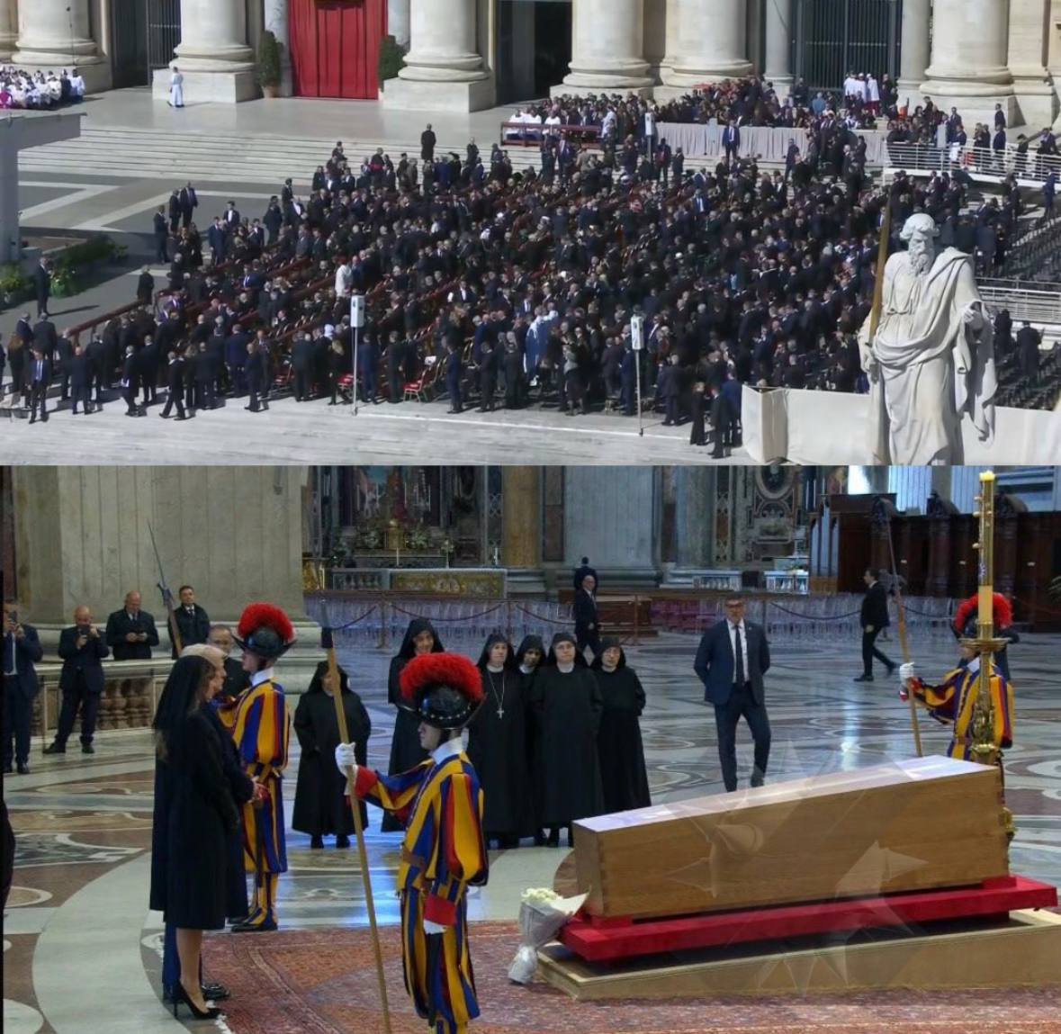 На церемонии присутствуют главы государств, среди которых Дональд Трамп, Владимир Зеленский, Эммануэль Макрон и многие другие высокопоставленные лица. Это событие стало важным моментом не только для католической церкви, но и для международного сообщества, объединяя людей разных национальностей и вероисповеданий в момент скорби и памяти о выдающемся духовном лидере.