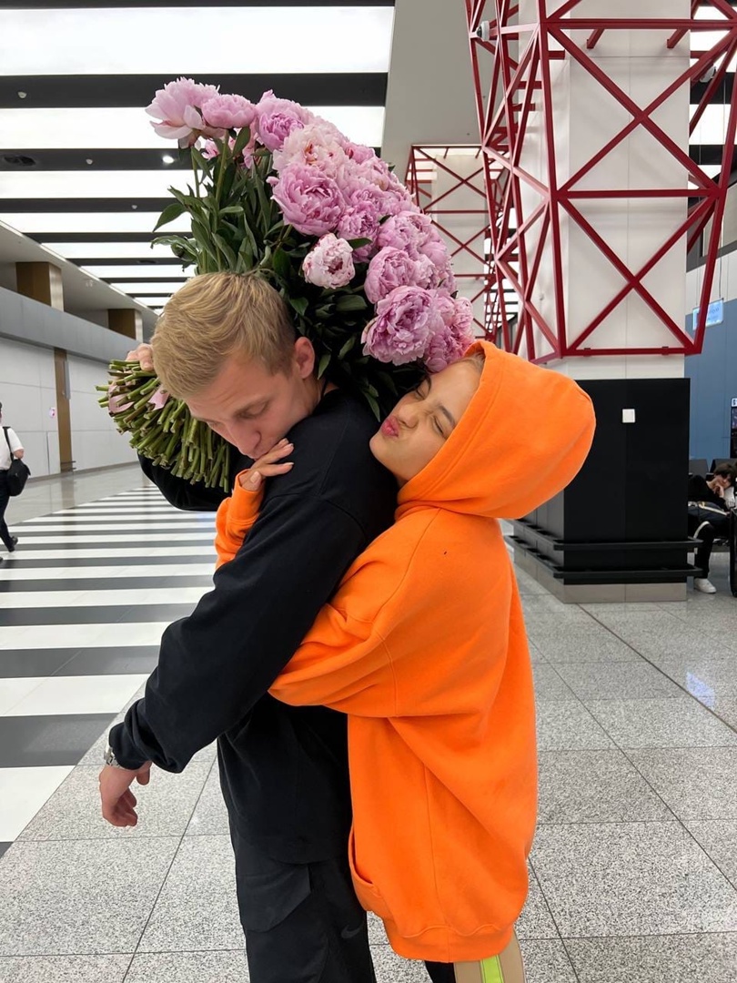 Блогерша, наконец-то, вернулась в Москву, где в аэропорту ее встретил Саша Стоун и, естественно, не с пустыми руками. Молодой человек преподнес Вале прекрасный букет из нежно-розовых пионов. Влюбленные обнимались на фото и выглядели невероятно счастливыми.