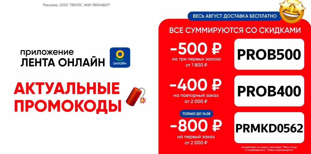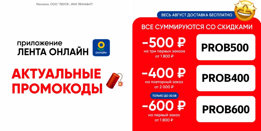 Лента Онлайн — промокоды, скидки, акции на Март 2025