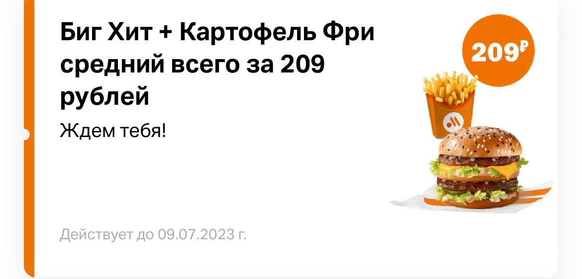 Биг Хит + Картофель Фри за 209₽ в Вкусно и точка