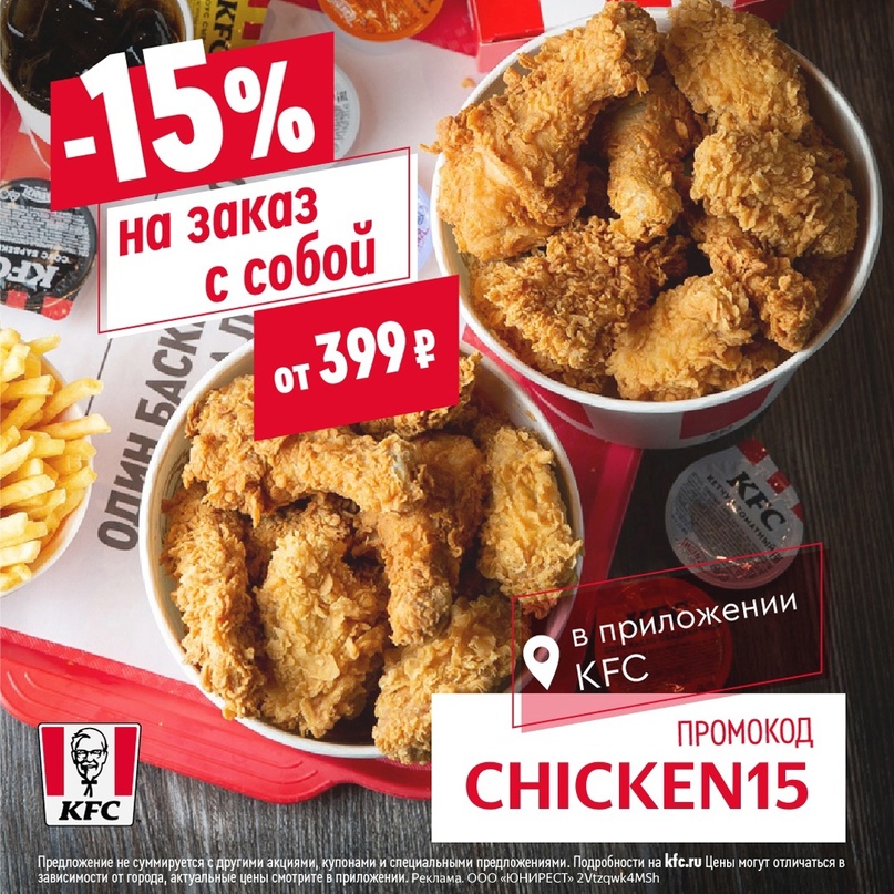 Получаем «Баскет Дуэт» в KFC за 369р (вместо 469р)