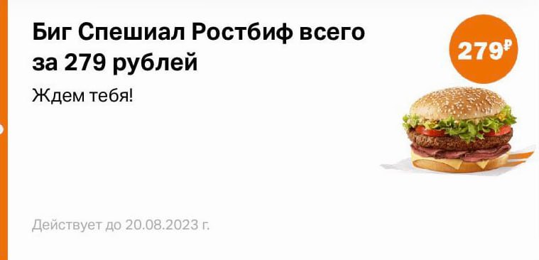 Биг Спешиал Ростбиф за 279₽ в Вкусно и точка