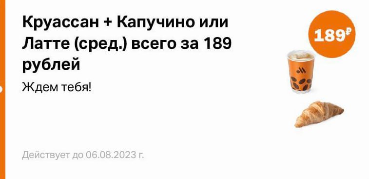 Круассан + средний Капучино или Латте за 189₽ Вкусно и точка