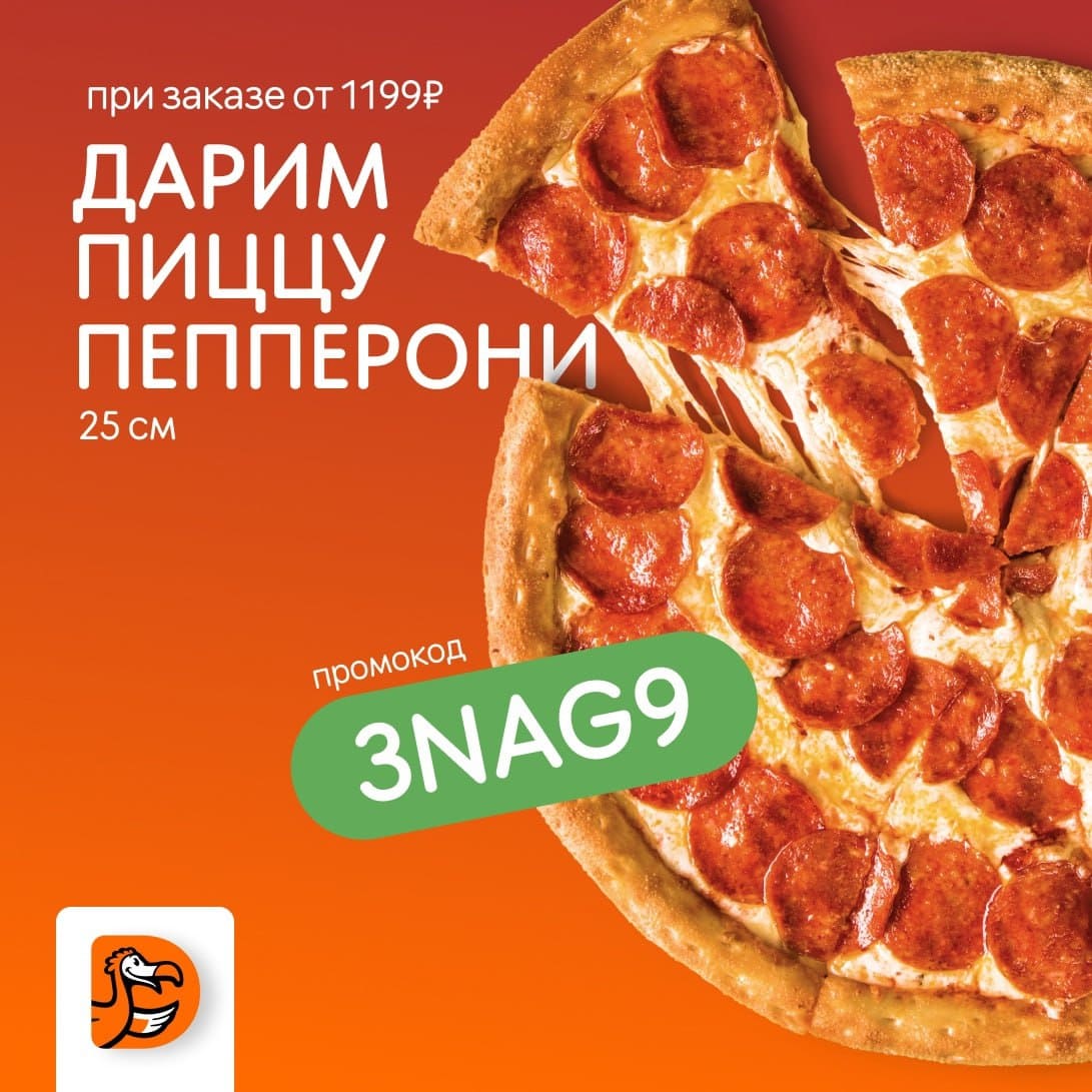 Москва и МО Получаем пиццу «Пепперони» 25 см в подарок при заказе от 1 199р в Dodo Pizza