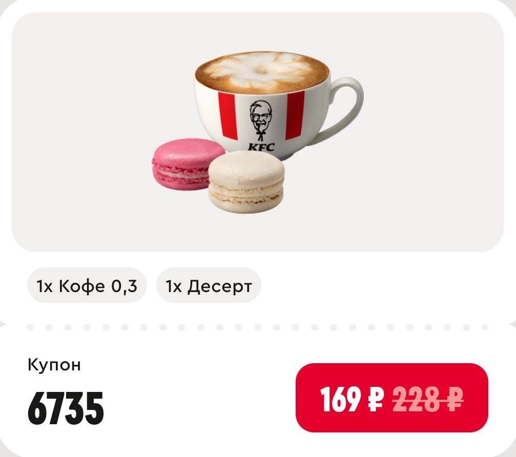 Получаем Кофе 0,3 + Десерт за 169₽ в KFC