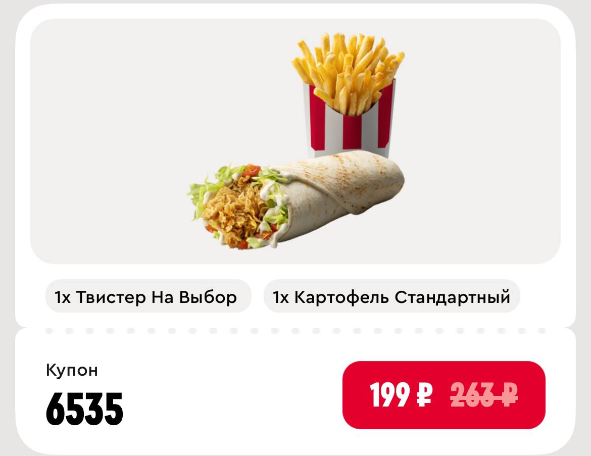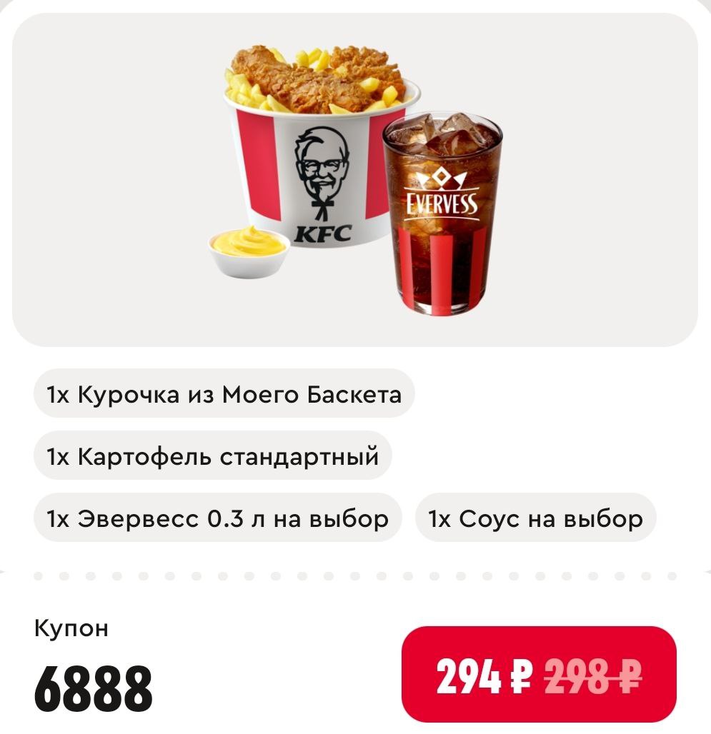 Курочка из Моего Баскета + Картофель стандартный + Эвервесс 0.3л + Соус за 294₽ в KFC