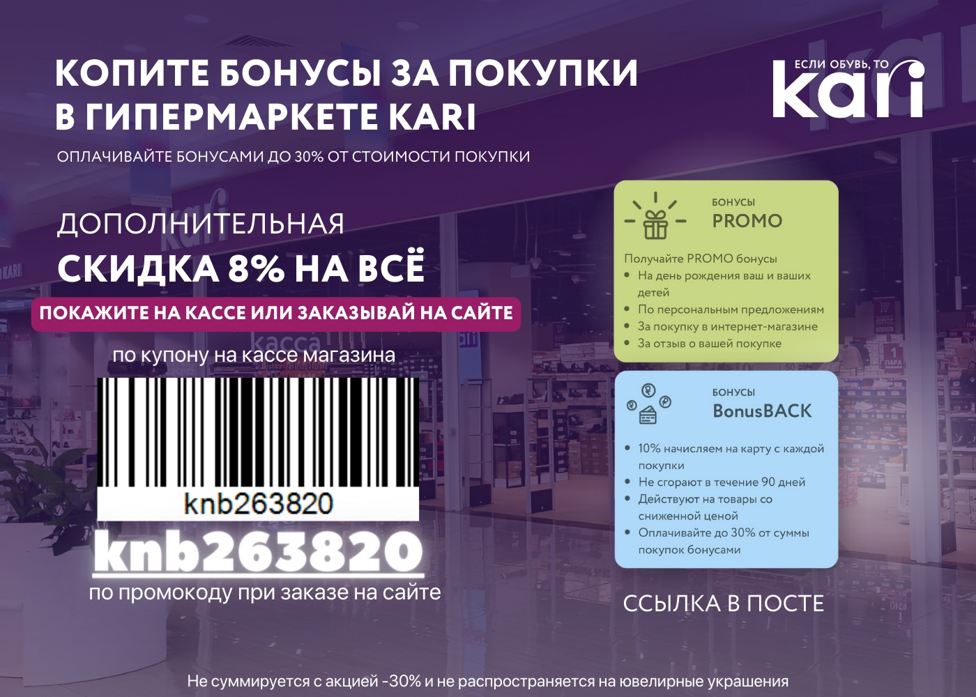 KARI - Доп. скидка 8% на всё. Действует на сайте и в магазинах