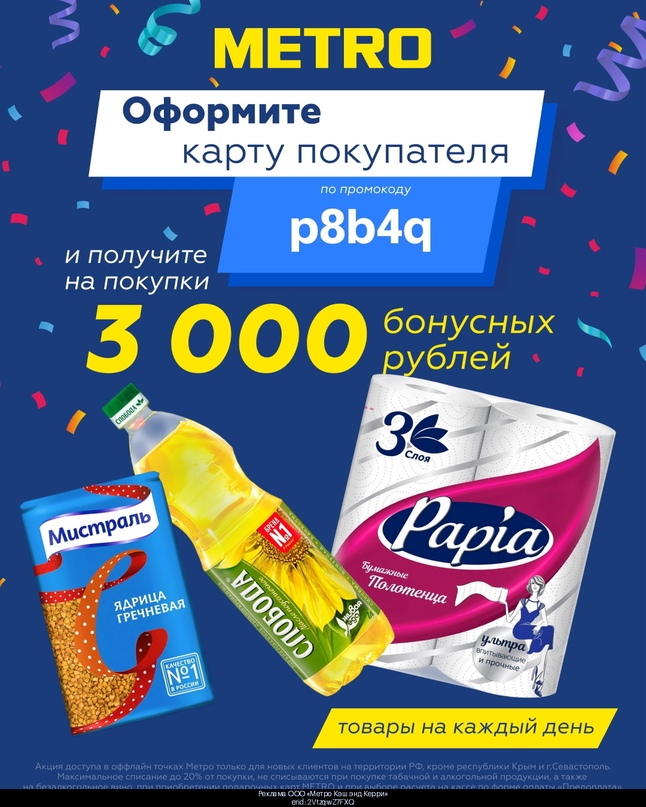 Бонусные рубли на карту METRO