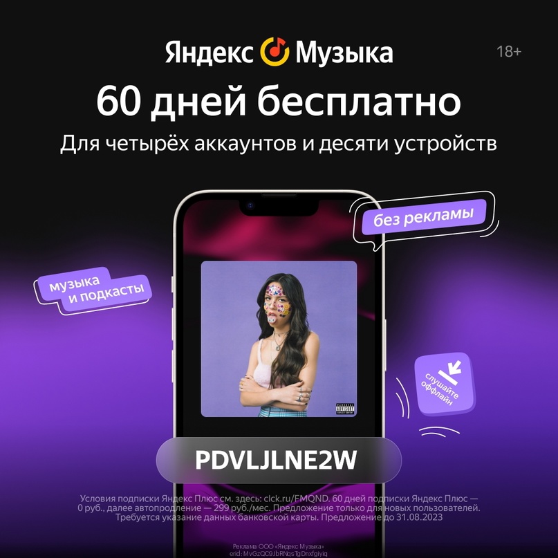 Два месяца подписки на Яндекс Музыка