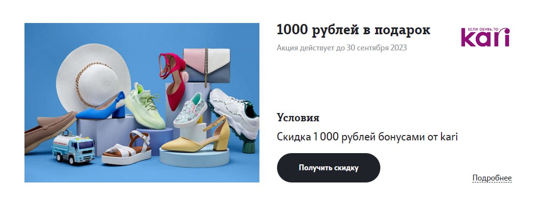 1 000 бонусных рублей в подарок в сети Kari (для абонентов Теле2)