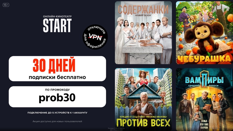 30 дней подписки на START